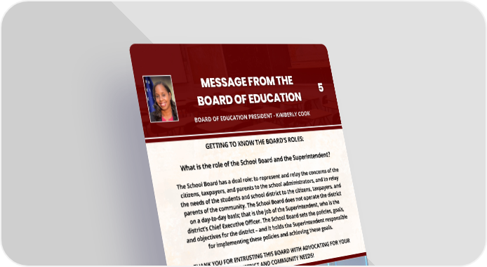 GETTING TO KNOW THE BOARD'S ROLES: What is the role of the School Board and the Superintendent? The School Board has a dual role: to represent and relay the concerns of the citizens, taxpayers, and parents to the school administrators, and to relay the needs of the students and school district to the citizens, taxpayers, and parents of the community. The School Board does not operate the district on a day-to-day basis; that is the job of the Superintendent, who is the district’s Chief Executive Officer. The School Board sets the policies, goals, and objectives for the district – and it holds the Superintendent responsible for implementing these policies and achieving these goals. THANK YOU FOR ENTRUSTING THIS BOARD WITH ADVOCATING FOR YOUR DISTRICT AND COMMUNITY NEEDS!